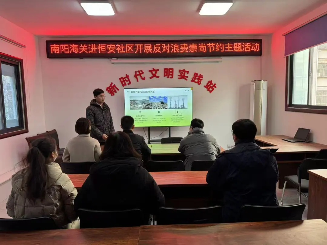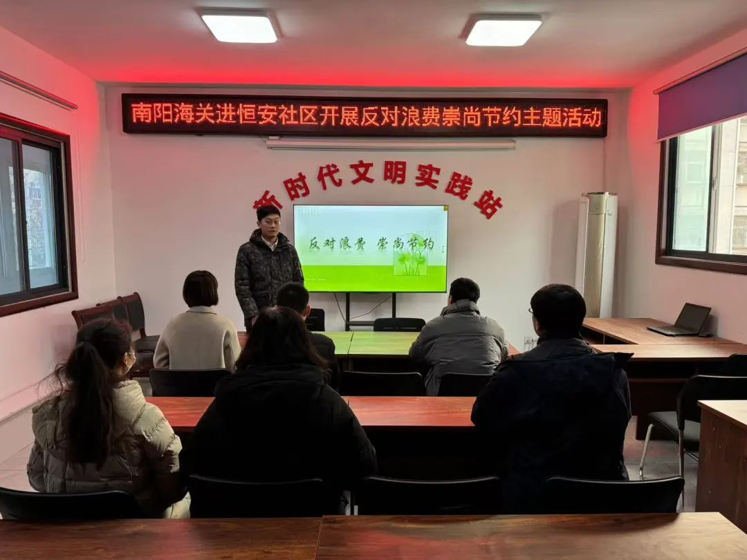 宛城区汉冶街道:开展“反对浪费,崇尚节约”宣传活动1月3日,汉冶街道恒安社区联合南阳海关,开展了一场以“反对浪费,崇尚节约”为主题的宣传活动,旨在提高社区居民的节约意识,推广绿色生活理念。
