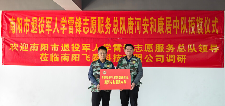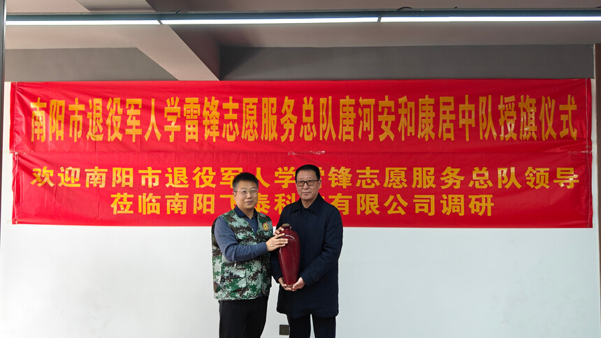 南阳市退役军人学雷锋志愿服务总队 走访调研唐河大队并为唐河安和康居中队授旗授牌2025年1月15日上午,南阳市退役军人学雷锋志愿服务总队在总队长殷明全、第一政委余国廷、政委张振海的带领下,一行7人来到唐河县走访调研唐河大队并为“唐河安和康居中队”举行授旗授牌仪式。