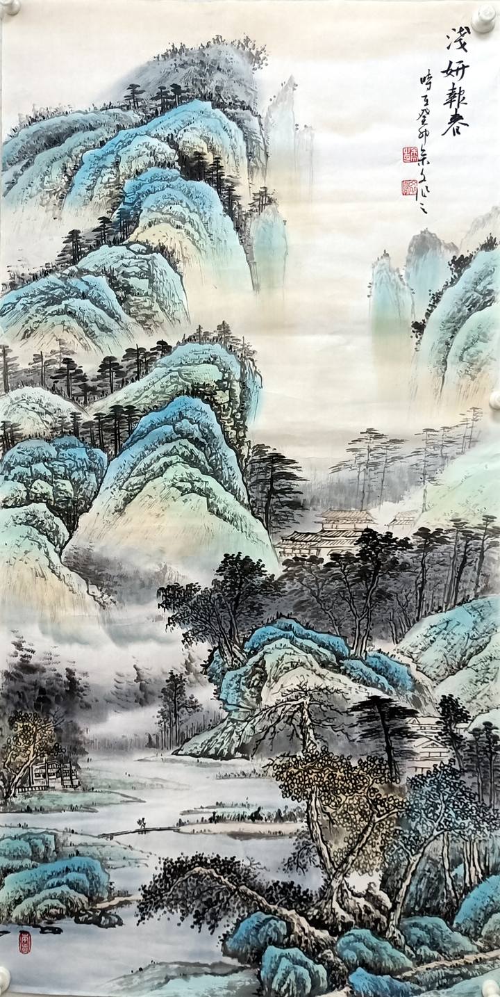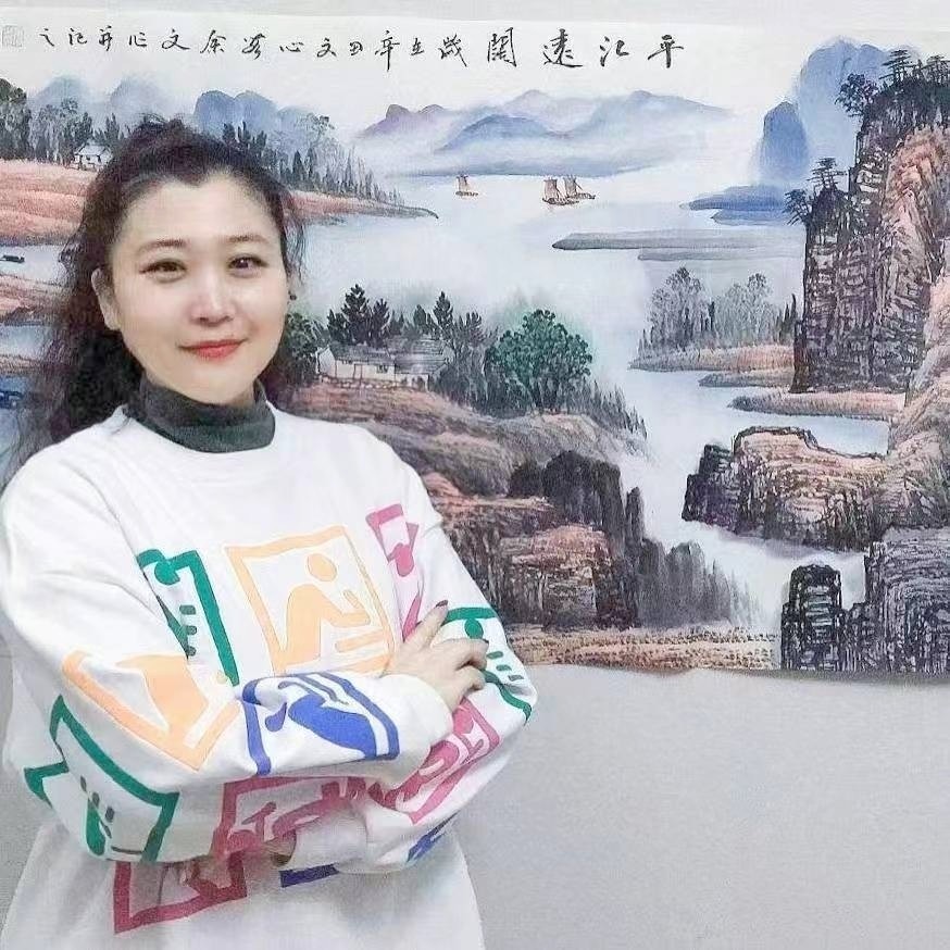 白云遍地无人扫 余文山水在画上。走进书画家余文院长的山水人生,见其技艺和风采。余文耕耘艺坛二十余年,不断学习中西绘画技法,后专攻临摹古画,在汲取古法精华的基础上,形成了自己独特的绘画风格。作品既有传统的原素,更具现代的创新风格,她倡导“师法自然”“境由心造”“画由心出”。她的作品以大自然为蓝本,镶嵌人间美景,在不失自然法度的基础上,又给人以天然的、民族的、恢宏或灵秀的气质;从大自然的规律中提取本色、光影、形态等自然元素配合民族精神及社会文化为核心从而形成其特有的创新气质,给人新形象,新内涵,新感悟,新朝气。