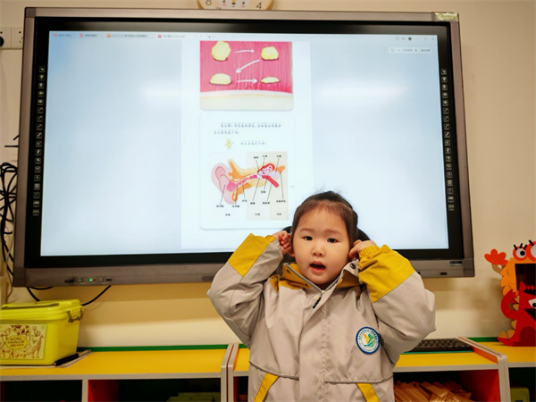 中班的教师以简单易懂的方式,讲解保护耳朵的知识,引导幼儿分组讨论哪些行为会对耳朵造成伤害,并分享自己的相关经历,还组织了《听声辨位》游戏,让幼儿蒙上眼睛辨别声音来源,从而更深刻地理解声音与耳朵之间的关系 。
