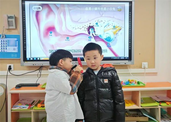 大班的孩子们则通过观看图片和视频,深入了解耳朵的结构和功能。复杂的耳廓、耳道、鼓膜等结构变得直观易懂。孩子们惊讶地发现,小小的耳朵里居然藏着这么多奥秘。
