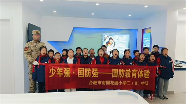 少年强 国防强--合肥市南国花园小学二(8)中队国防教育体验活动3月2日上午9时,春日暖阳倾洒,南国花园小学二(8)中队的同学们满怀期待,踏入了庐阳区国防知识科普馆,开启了一场意义非凡的国防知识探索之旅。