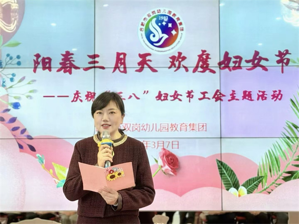合肥市双岗幼儿园教育集团:阳春三月天 欢度妇女节--庆祝“三八”国际妇女节工会主题活动阳春三月,万物生辉,在这充满温情的季节里,恰逢第115个“三八”国际妇女节到来之际,在合肥市双岗幼儿园党支部书记、集团总园长余冬梅的统筹安排下,集团党工团组织四园教师开展以“阳春三月天,欢度妇女节”为主题的“三八”国际妇女节庆祝活动,还邀请退休老教师回到幼儿园共同度过一个温情有意义的节日。 活动在总园长余冬梅温情、真挚的致辞中拉开帷幕,余园长代表合肥市双岗幼儿园教育集团园领导班子向每一位坚守岗位、辛勤付出的女教职工致以最诚挚的节日祝福!感谢大家在工作中的点滴付出,用坚韧和乐观,诠释着新时代女性的风采,同时希望大家能尽情享受这次活动,拥有健康的身体和愉悦的心情。