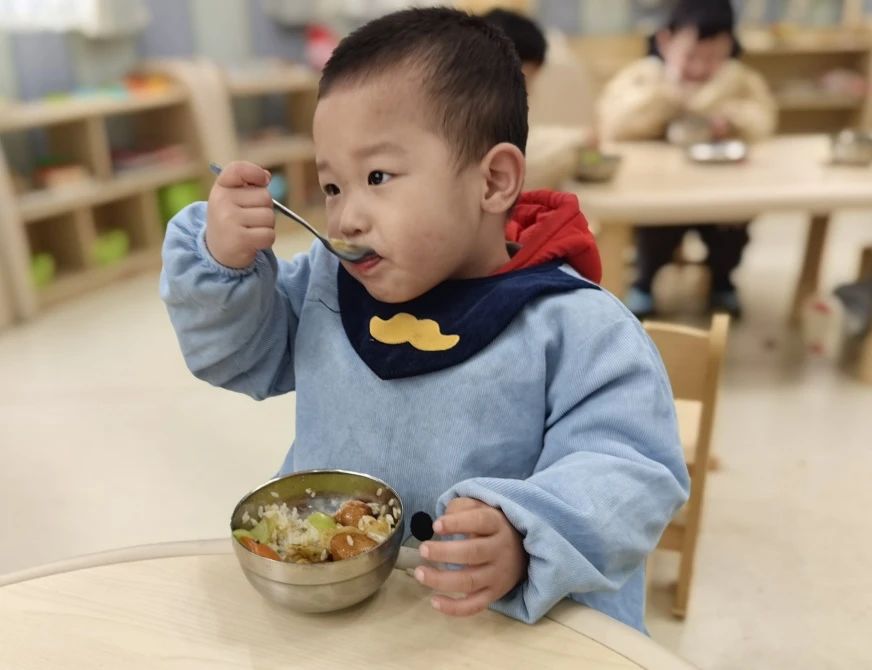 用餐时间,孩子们在老师的鼓励下,自己动手,安静就餐。本学期的几名新生宝贝也学会了自己使用餐具,自理能力有了很大的提升。
