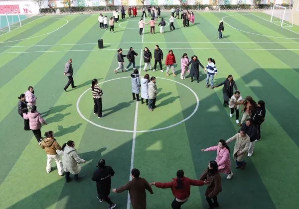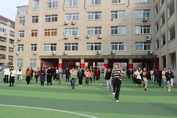 在正式比赛之前,全体教师跳起了欢快的《舞动青春》韵律操。欢快的旋律、活泼的动作,不仅让大家迅速进入了运动状态,更拉近了彼此之间的距离。这充满活力的热身舞,为整个运动会奠定了轻松愉快的基调。