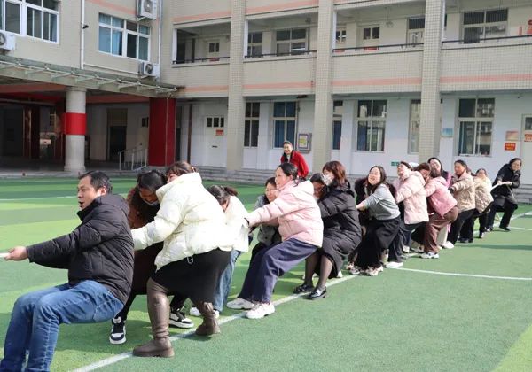 拔河比赛无疑是最激动人心的项目。老师们双手紧握绳子,眼神坚定,齐心协力,口号声震彻全场。这不仅是力量的较量,更是团队默契与凝聚力的体现。每一次发力,都凝聚着团队的力量;每一张涨红的脸庞,都写满了坚持与拼搏。