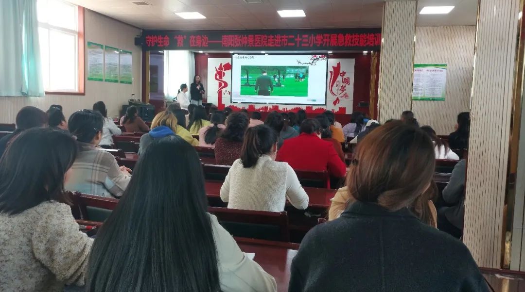 守护生命,“救”在身边——南阳市第二十三小学校开展急救技能培训为进一步增强教师应急救护能力,筑牢校园安全防线,3月21日下午,南阳市第二十三小学校邀请张仲景医院护理部专家团队为全体教师开展了一场生动实用的心肺复苏(CPR)与海姆立克急救法专题培训。