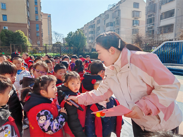 合肥市双岗幼儿园源水分园:知时节 晓春分伴着春天的脚步,我们即将迎来二十四节气之中的第四个节气——春分。为了让幼儿了解春分的由来和习俗,体验、感受中国二十四节气的传统文化,2025年3月17日,合肥市双岗幼儿园教育集团源水分园举行了“知时节 晓春分”的升旗仪式主题活动。 担任本次升旗手的是来自大一班的小朋友。看!他们迈着整齐的步伐,托举着神圣的五星红旗向升旗台走去,随着国歌奏响,升旗手缓缓拉动绳子,五星红旗在嘹亮的国歌声中飘扬,随风而扬的五星红旗在这春意盎然的校园里格外鲜艳夺目。
