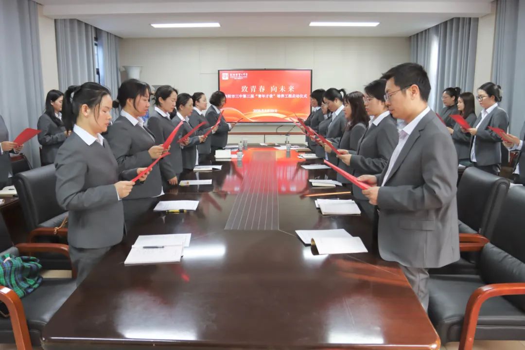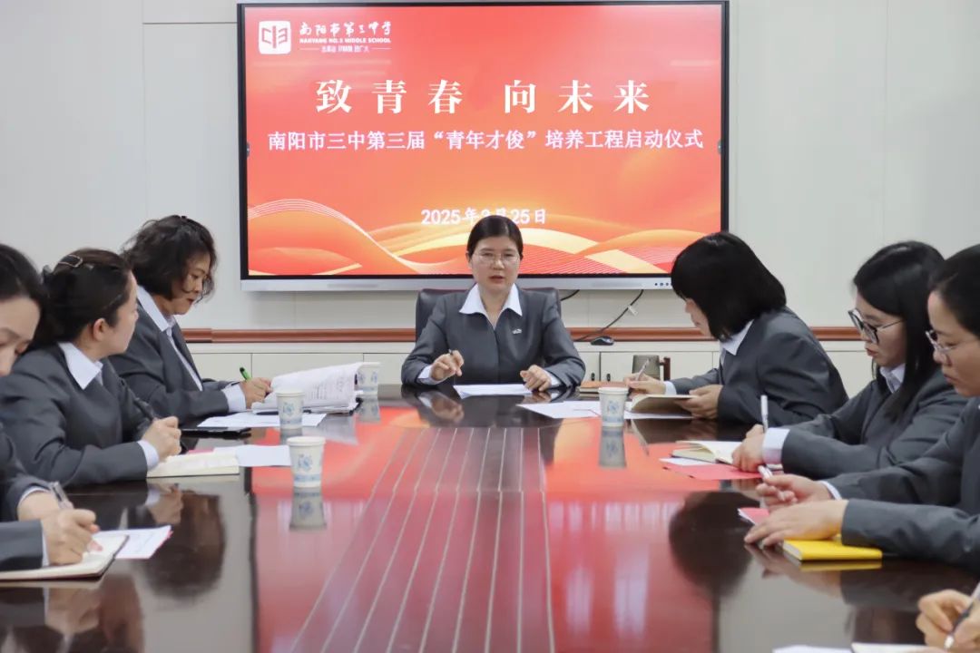 南阳市三中启动第三届“青年才俊”培养工程春潮涌动催人进,扬帆逐梦正当时。3月25日下午,南阳市三中第三届“青年才俊”培养工程启动仪式在二楼会议室隆重举行。以“致青春·向未来”为主题,学校领导与22位青年教师齐聚一堂,共同开启一场赋能成长、共赴山海的教育新征程。南阳市三中校长刘俊峰、副校长刘明莹出席活动,为青年教师擘画成长蓝图,点燃奋进激情。本次活动由科训室主任康清主持。