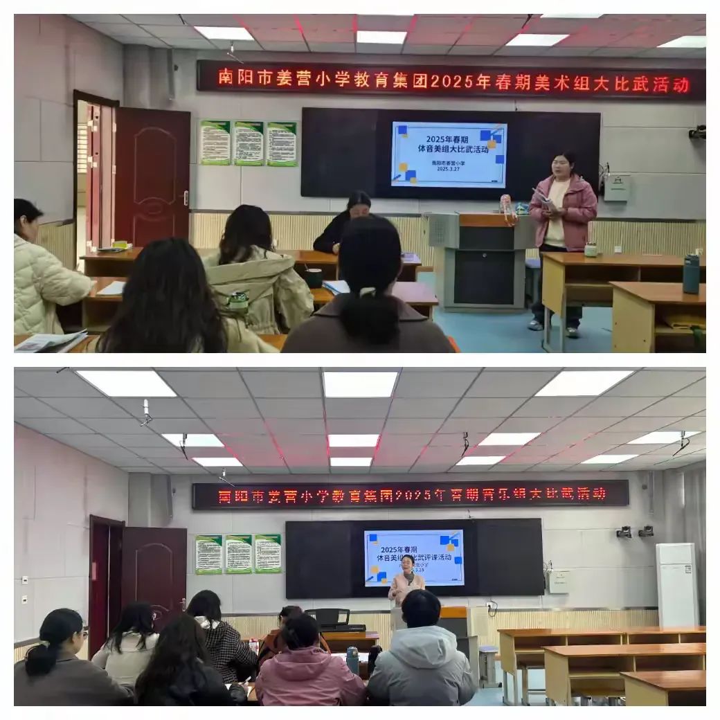【校园动态】“武”动艺体风采、同课异构促优——南阳市姜营小学开展2025年春期体音美学科教学大比武活动春天的美在于它的蓬勃与灵动。踏入春天,沐浴着万物复苏的朝气与活力。近年来,南阳市姜营小学秉持多元发展与以生为本的教育理念,紧扣素质教育核心,助力教师成长,优化教育品质。 近日,南阳市姜营小学开展春期体音美学科组教学大比武活动,着力提升教师的专业素养与创新教学水平,力求在体育课堂上激发学生的运动潜能,塑造强健体魄;于音乐殿堂中唤醒学生的艺术感知,陶冶高雅情操;在美术天地里点燃学生的创意火花,培养审美意趣,全方位挖掘孩子们的天赋潜能,为他们的成长之路铺就绚丽底色,让每一个孩子都能在春天里绽放属于自己的光彩。