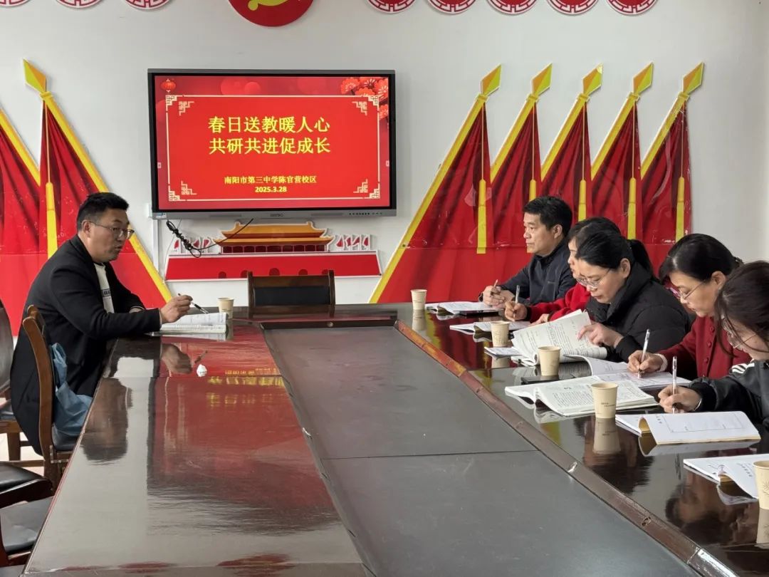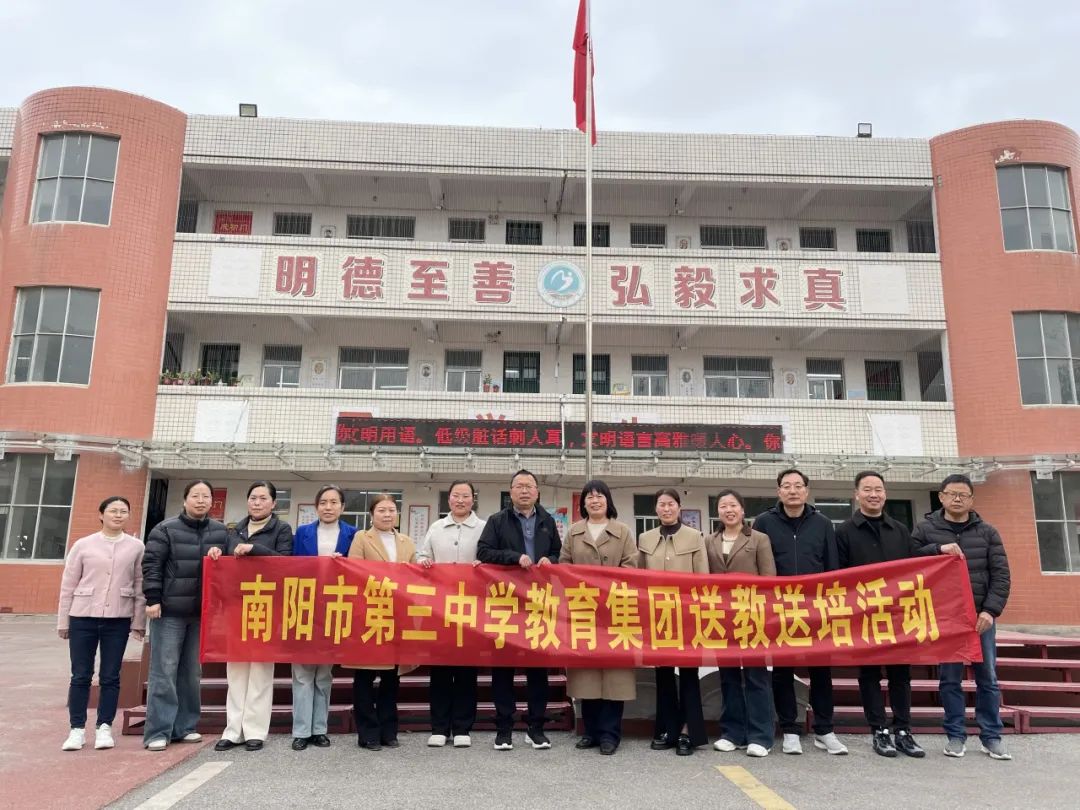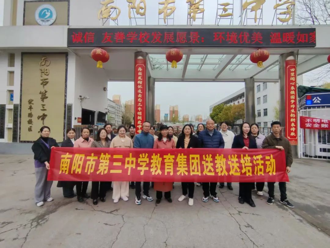【集团办学】春风送教促均衡 集团共研绽芳华——南阳市三中教育集团开展春期送教送培活动三月春正好,教研正当时。3月28日,在集团校长刘俊峰统筹安排下,南阳市三中教育集团建设路校区副校长刘明莹、白中岐、刁春瑜和办公室主任雷恩伦率首席骨干教师团队分赴伏牛路、王堂、陈官营、解放路四大集团成员校,通过示范教学与联合教研,奏响教育均衡发展的春日协奏曲。 伏牛路校区