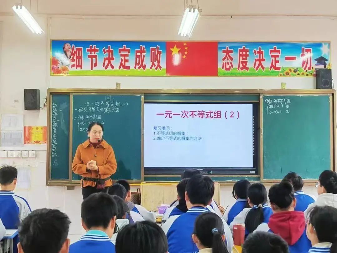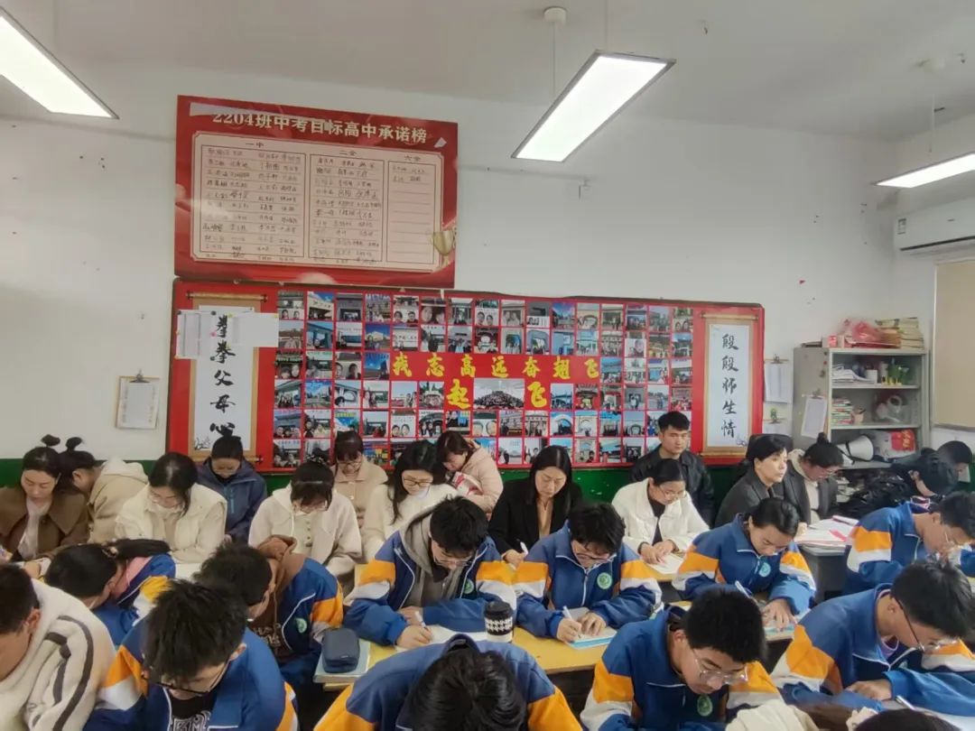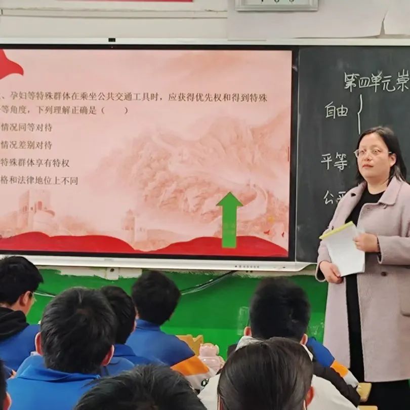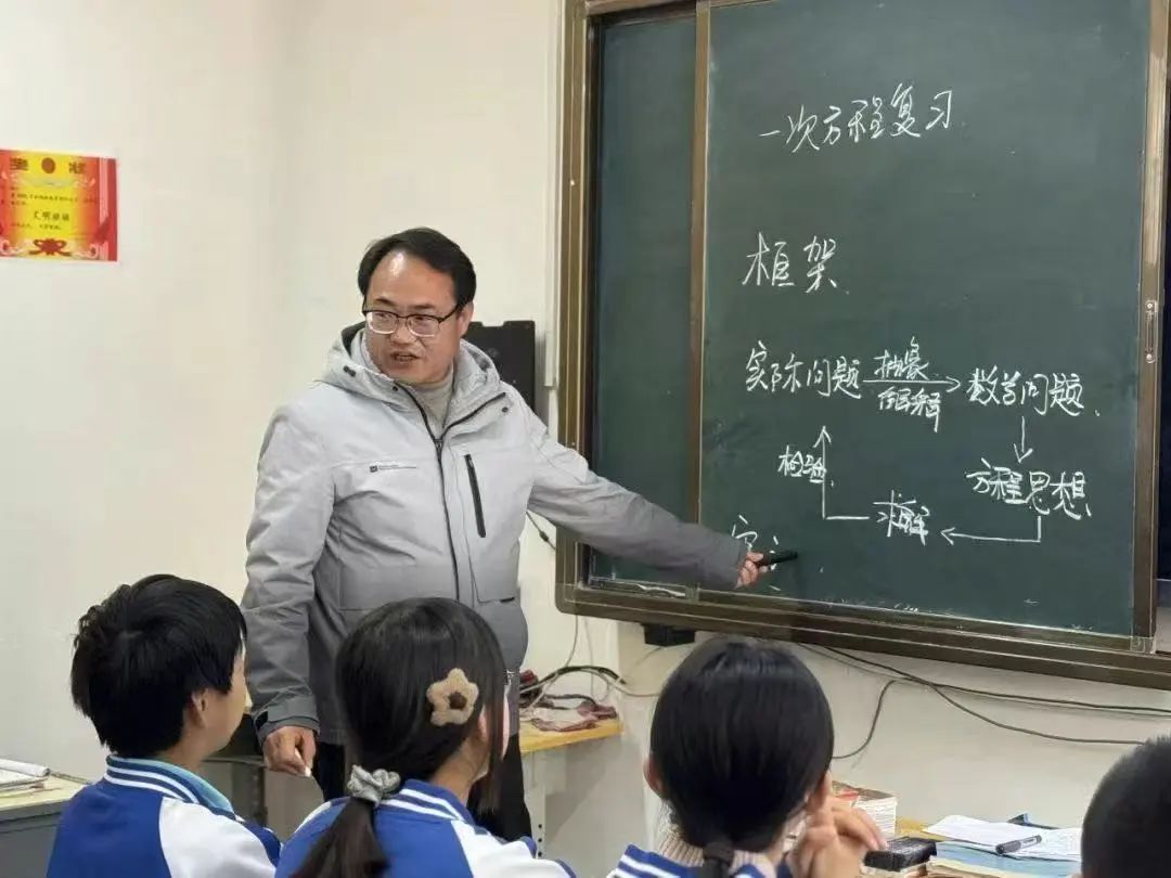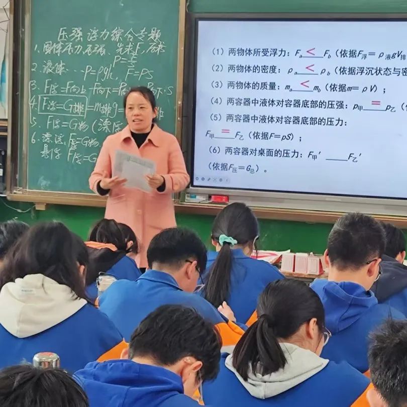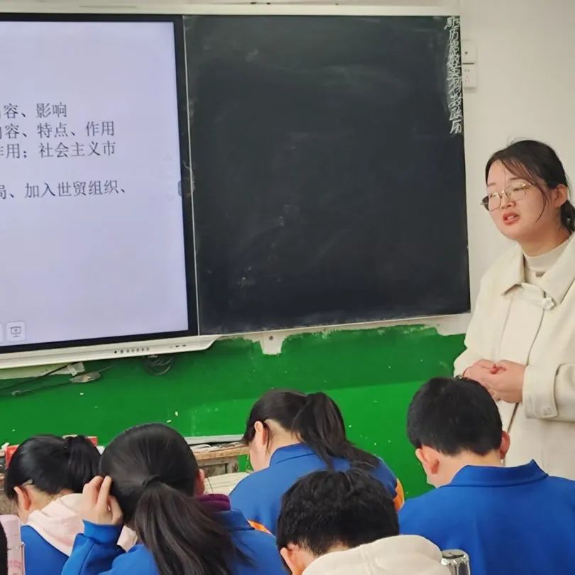 校本部九年级教师王明月、邓苗苗、陈建华、张亚军 、王菲菲、吕瑞霞、马琳娜送教到伏牛路校区。 语文王明月老师《记叙文写作指导》采用问题导向式教学,通过讲练结合激活学生表达欲;数学邓苗苗老师构建“个人讲解—小组协作—答疑展示”的立体学习模式,实现函数知识深度串联;英语陈建华老师以开放式提问驱动多维思考,打造高频互动课堂;道法张亚军老师通过结构化知识建构与情境化问题设计,有效培育法治素养。历史王菲菲老师以“改革—开放”重构单元体系,物理吕瑞霞老师运用建模教学突破压强浮力难点,化学马琳娜老师以“寻—验—制—化”探究主线引导学生自主实验,各科均彰显学科核心素养培育特色。