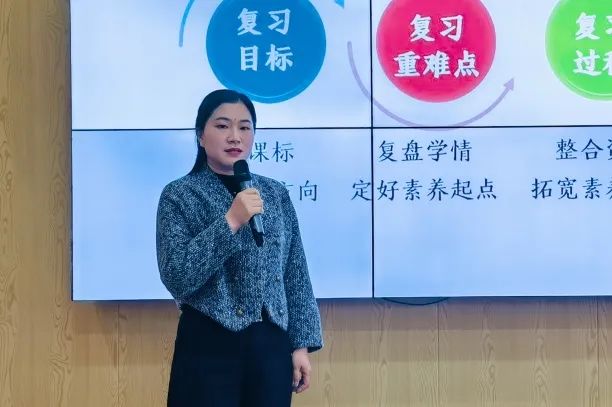 复习课是帮助学生将学过的知识进行归类整理,形成系统认知结构,让学生所学知识得到迁移提高的一种课型,是学生学习路上的“能量补给”。马付丽老师结合新课标的要求,提醒老师们核心素养视角下的复习课不仅要关注知识与技能的“学会”,也应关注思维与方法迁移的“会学”,更应关注真实情境下的问题解决和创新意识,从而提高学生综合素养。