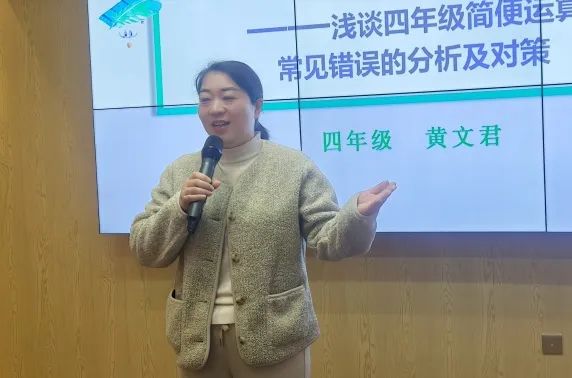 黄文君老师聚焦四年级下册运算律教学分享了《简便之中不简单》。在教学实践中,单独学习各运算定律时,学生鲜少出错,可学完综合运用时,却错误频出,乘法分配律部分尤为明显。经分析,错误主因有概念理解模糊、计算方法混淆、知识负迁移以及思维定势干扰。对此,黄老师提出了针对性策略:通过对比相似算式,助力学生明晰概念;组织拆分数字讨论活动,增强学生对数字的敏感度;结合生活实例,如购物付款、乘车人数变化等,帮助学生理解算理;收集错题,组织学生分析改正,总结防错方法 ,以此提升学生的简便运算能力。