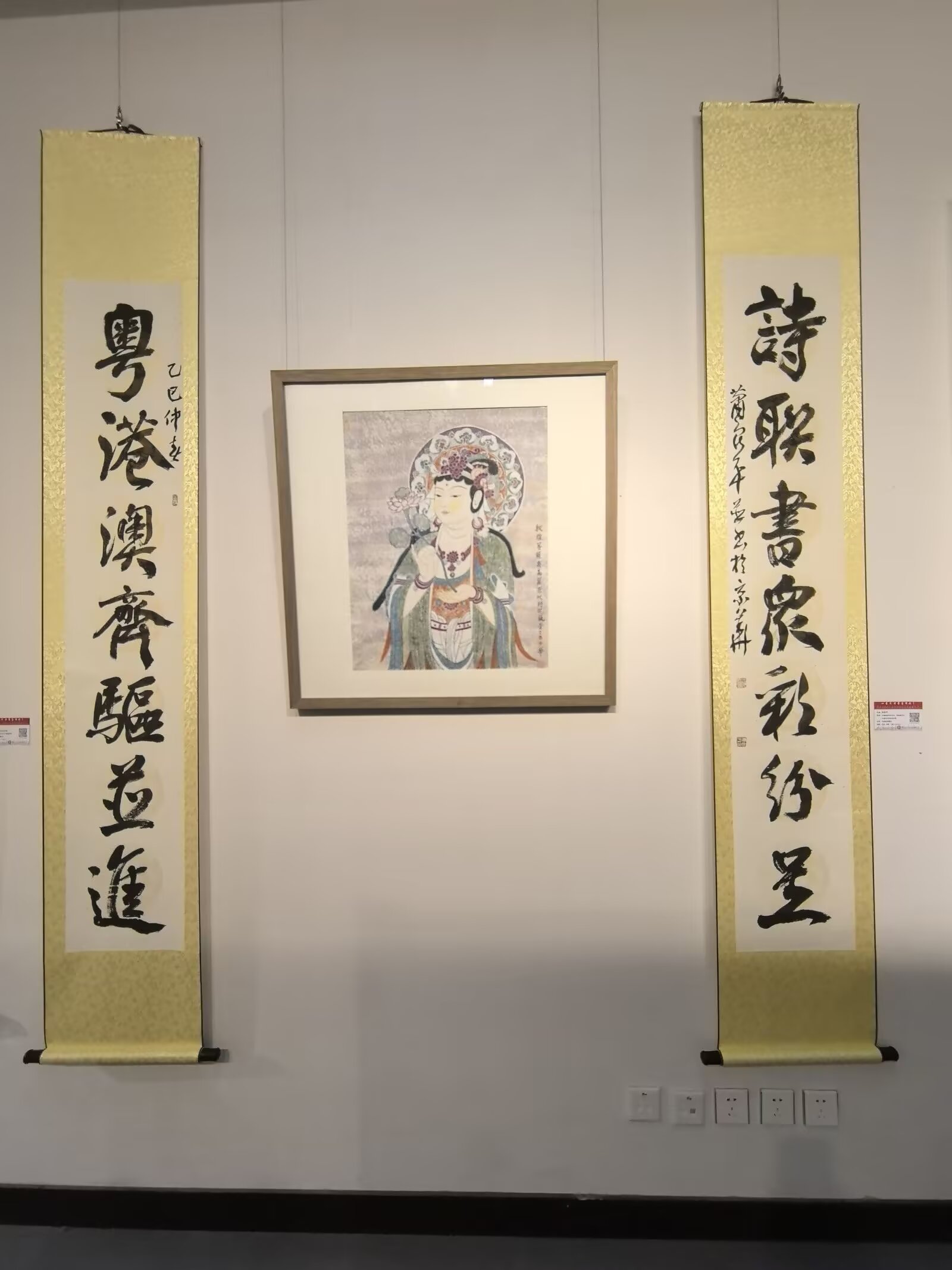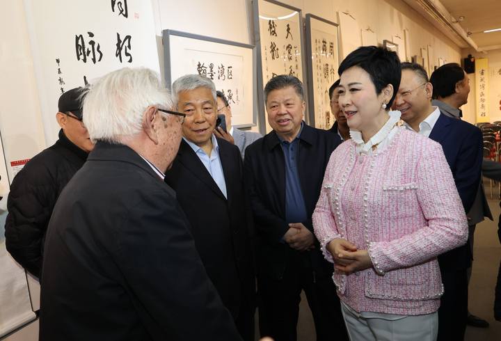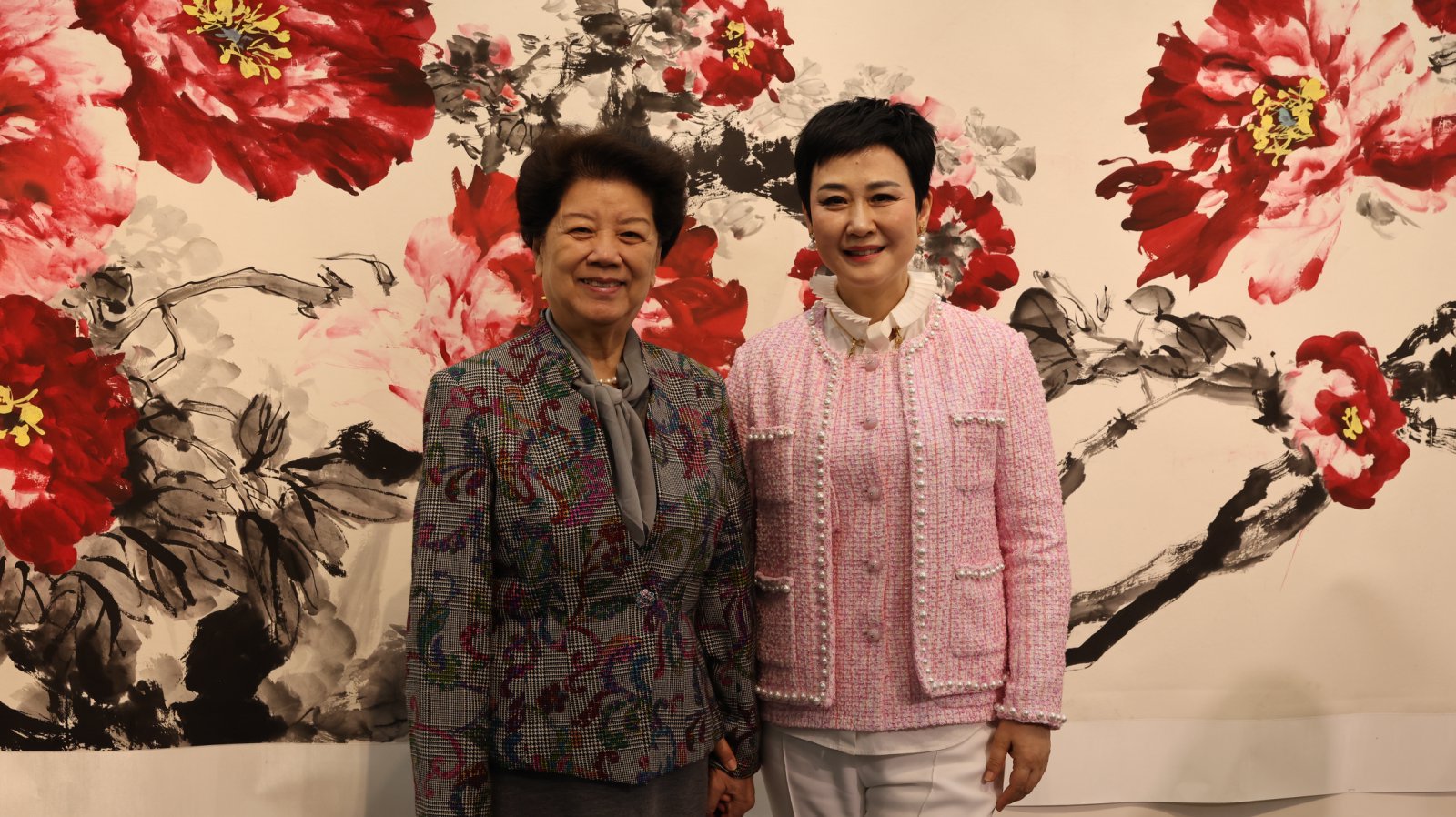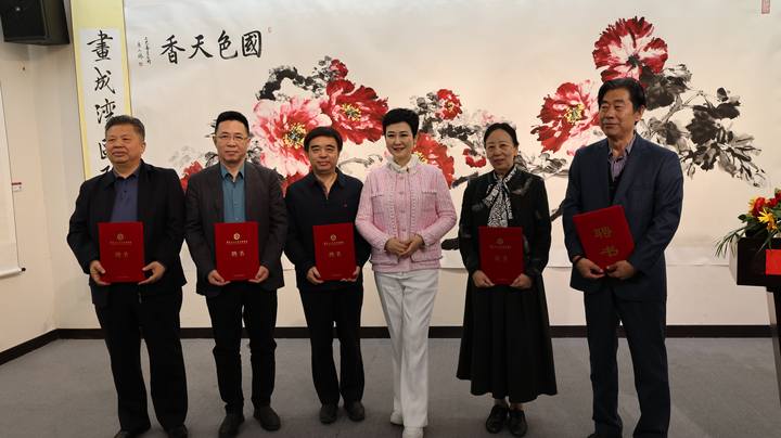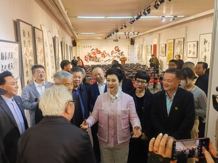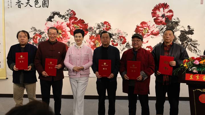 李小琳主席代表华夏文化促进会分别向出席开幕仪式的我国文化艺术界领导、专家学者、著名书画家颁发了聘书。向连辑颁发了华夏文化促进会书画分会名誉会长聘书,向著名美术评论家孙克、王仲等颁发了华夏文化促进会书画分会名誉顾问聘书,向孔紫、舒乃仁、尹鸿祝、彭利铭、石占成等颁发了华夏文化促进会书画分会顾问聘书,向程茂全、刘存惠、赵青仲、李金泰、李笑天颁发了华夏文化促进会书画分会理事聘书。向华夏文化促进会书画分会领导郭正英、张金卫、宋伯军、陶古颁发了常务会长、执行会长、常务副会长兼秘书长,副会长的聘书。这一系列聘任彰显了华夏文化促进会在推动书画艺术发展方面的专业性和权威性。 在江必新院长、于赋主任、赵少华部长、孔紫会长、蔡豪杰主席、张国鸿会长的见证下,第十一届全国人大常委会副委员长、国务院原国务委员陈至立宣布“首届粤港澳大湾区书画艺术交流汇报展”开幕。 本次展览展出胡振民、李乾元、范印华、厉有为、桓玉珊、江必新、赵少华、樊振寅、陈广文、王文章、覃志刚、于赋、连辑、张旭、冯远、夏潮、官景辉、苏士澍、李小琳、苏树辉、郜宗远、尼玛泽仁、林阳、张飙、徐里、罗杨、郭怡孮、孙克、王仲、李庚、李培隽、舒乃仁、许钦松、张德俊、叶培贵、张 继、彭利铭、田伯平、刘俊京、王云武、肖良平、陈秀、魏殿松、程茂全、宋伯军、陶古、赵青仲等老部长、老将军、文化艺术界领导、专家学者、著名书画家题写贺词、墨宝,还展出了粤港澳大湾区书画艺术交流团书画家郭正英、李秀峰、李金泰、张坤、赵玉杰、田万荣、张宝华、马金虎、王占寅、张世宝、朱俊国、战国权、萧耀明、吴国英、李勇逸、时凤雪、马振国、陈若文、张树香、李笑天、韩民霞、王振渊、张景峰、刘冬花的作品,以及来自香港特区书画家陈志恒、李可玉、梁暖、黎富強、麦锦超、郭洪球、廖汉和、伍槐枝、蔡传达、梁志光、陈月琼、冯美芳;来自澳门特区书画家张国洪、陈国森、陈忠华、卢振雄、岑建平、左伟鸿、刘丽珍、黎真珍、杜国安、江佩仪作品近百幅。作品题材丰富、形式多样,涵盖了山水、花鸟、人物及书法等多个领域,充分展现了中华书画艺术的独特魅力。本次活动展览现场还特别展出了李小琳主席的丈六巨幅国画《国色天香》及题词墨宝,其作品笔力雄健、气韵生动,展现了深厚的文化底蕴,成为展览的一大亮点,为活动注入了强大文化引领力。中国当代书法家、著名美术评论家、九十高龄的孙克老先生有感而发道:“李小琳主席画的巨幅牡丹,让人深感振奋,她作为一个成功的企业界人士,还有这么强大的精力来画这么大的巨幅作品,很是难得。自古以来大家都在画牡丹,但是能画的很高雅,充满力度、精气神,是很不容易的。李小琳主席的牡丹气质很厚重,用笔非常的强劲,可见李小琳主席人格修养很有底气。她的画很有灵气,这不是一般人能达到的。这点我很欣赏。纵观整个作品艳而不俗,作为非专业画家,她的画绝不亚于一个专业的画家,这是很难得的。”多位参观者在李小琳主席作品前驻足欣赏,对其艺术造诣给予高度评价。