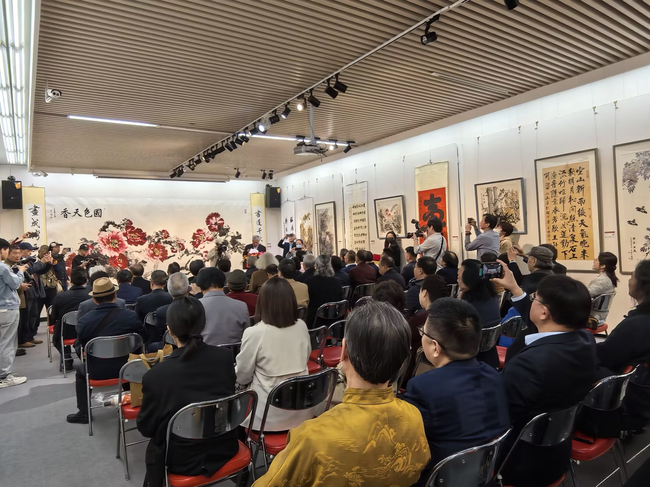 首届粤港澳大湾区书画艺术交流汇报展在京隆重举行时间:2025-04-09 四月京城阳光明媚,桃花盛开姹紫嫣红。4月7日,“心系家国 笔墨传情——首届粤港澳大湾区书画艺术交流汇报展”在燕京书画社美术馆隆重开幕。展览弘扬中华优秀传统文化,展示粤港澳大湾区书画艺术交流成果,深化内地与港澳文化融合。展览由华夏文化促进会支持,华夏文化促进会书画分会、燕京书画社主办,香港屯门文艺协进会、香港书法家协会、香港美术家协会、澳门中华书画艺术协会协办,北京新时代经纬文化中心、北京郞润世纪展览展示有限公司承办。华夏文化促进会主席李小琳女士出席开幕式并致欢迎辞,她指出:"华夏文化促进会始终致力于中华优秀传统文化的传承与发展。本次展览不仅是一次艺术盛会,更是粤港澳大湾区与内地文化交流的重要平台,展现了文化自信的新时代气象。"中国国家博物馆馆员、华夏文化促进会副会长兼书画分会执行会长张金卫主持开幕仪式。