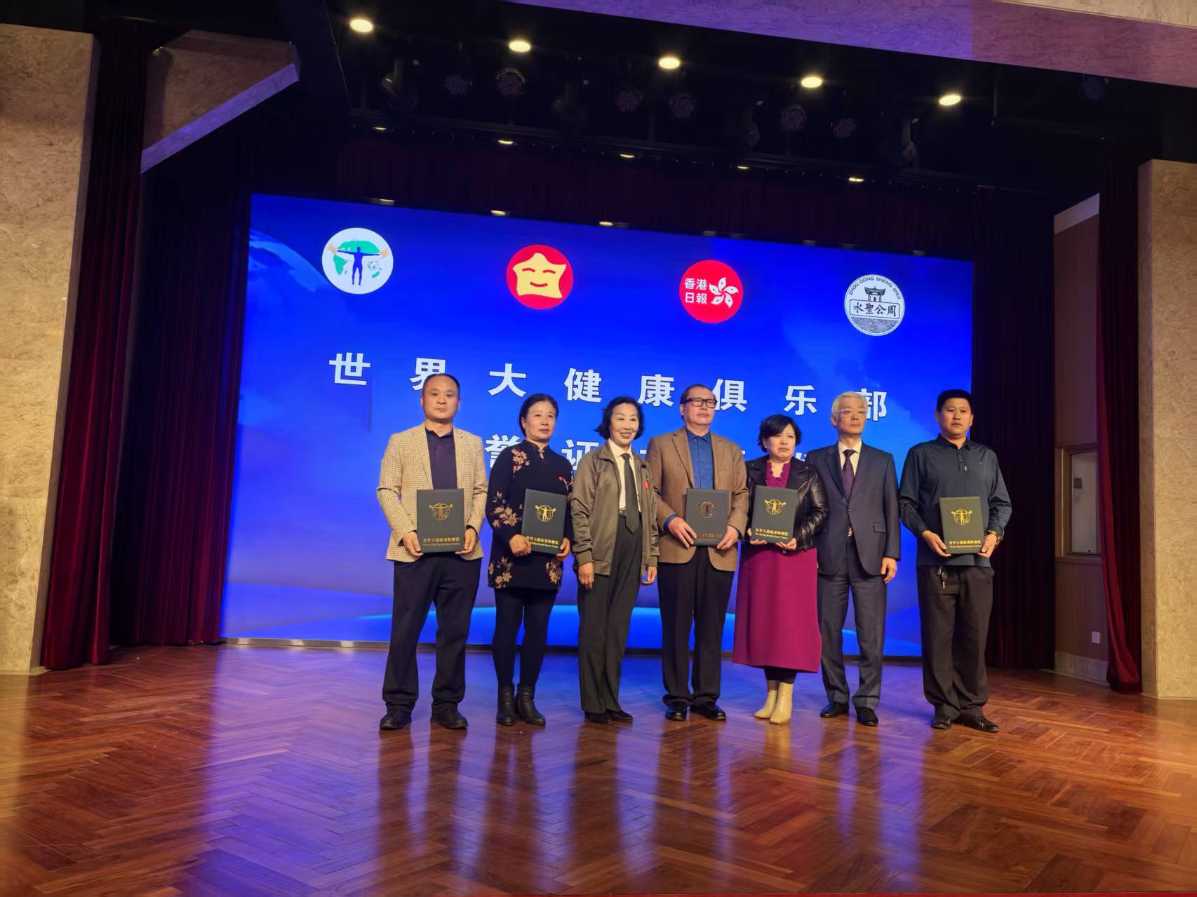 圣水传递启动 世界大健康运动联盟和世界大健康俱乐部向首批10个会员和10家媒体颁发了特别贡献奖和爱心大使荣誉证书。