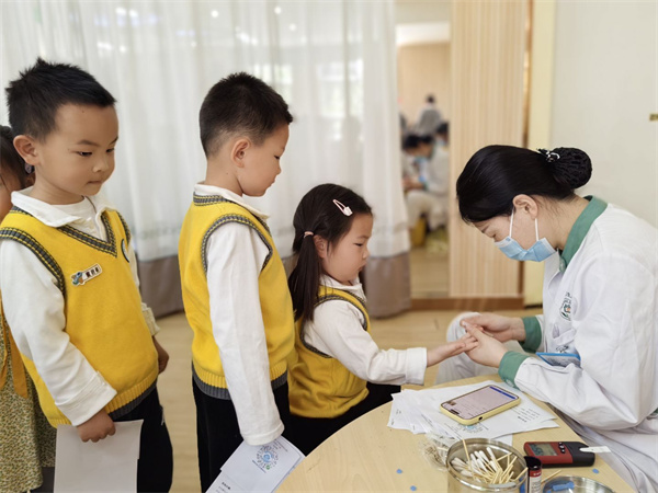 庐阳实验幼儿教育集团红玺台总园:健康成长 体检护航关注幼儿健康是幼儿园各项工作的重中之重,定期体检是保障幼儿健康的重要手段。为全面了解幼儿生长发育和健康状况,2024年4月15日,合肥市庐阳实验幼儿园教育集团红玺台总园迎接了海棠社区卫生服务中心人员入园对幼儿开展健康体检工作。本次体检主要包括身高、体重、口腔、视力、血红蛋白等方面的常规检查。 各班教师有序组织幼儿进行各项检查,并通过讲解、鼓励、表扬等方式给予幼儿心理疏导,营造积极轻松的体检氛围。