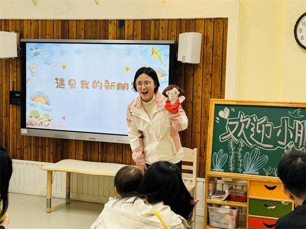 初次相见,温馨的环境,暖心的老师,小朋友、家长围坐在一起,借助音乐律动《问好歌》欢快地舞动起来。他们小小的身躯随着音乐摇摆,脸上洋溢着纯真的笑容,家长们也被这欢乐的氛围感染,不时拿出手机记录下这些美好的瞬间。