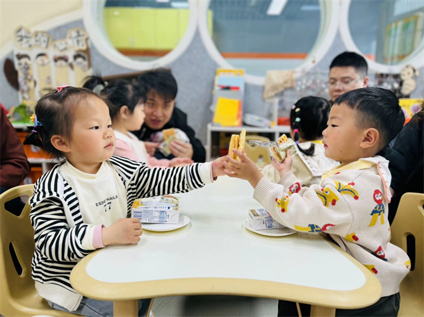 活动尾声,教师和保育老师引导孩子们排队洗手、擦拭,学习生活自理技能。回到教室后,园所为每位幼儿准备了营养点心,孩子们围坐餐桌,享受美味的同时,也初步感受集体生活的规则与仪式感。