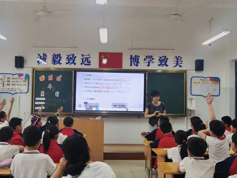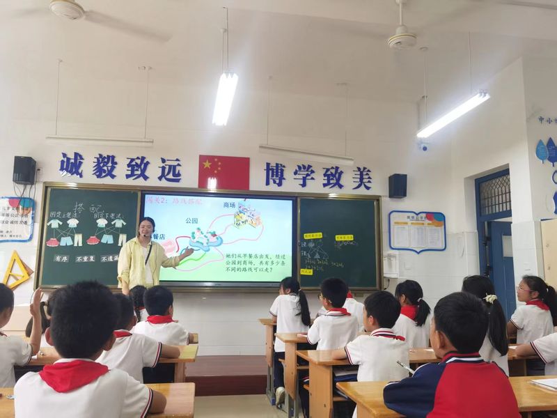 市八全小学部开展学区三年级数学联动教研活动为深化数学教学改革,5月8日,白河中心学校龙王庙学区三数联动教研活动在市八全小学部开展。 活动中,两位教师分别执教《年月日》《数学广角——搭配》。王老师以“时间密码探索”创设生活情境,融入游戏与操作;梅老师结合生活场景,引导学生自主探究搭配规律。