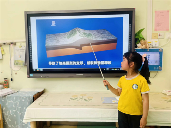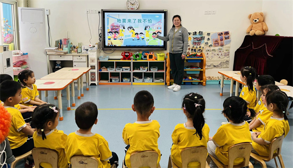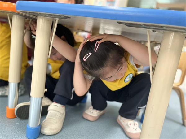 防震知识 牢记心间 各园教师根据本班幼儿年龄特点,通过多种形式的防震主题活动,向幼儿讲解地震避险知识,示范“就近躲避”“扶稳抓牢”“遮挡”“小步快跑”等避震要领,让幼儿熟悉、学习并练习相关的应急避震和安全疏散的方法。