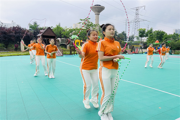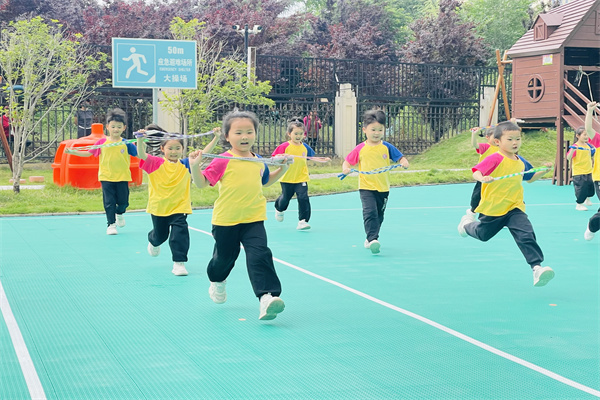 球绳炫童趣,绿茵绽光芒 晨光熹微,户外操场已然成为欢乐的运动海洋。中班幼儿的篮球表演率先开场,他们如同灵动的篮球小达人,小手与篮球默契配合,运球节奏明快流畅,小小的身躯中迸发出无限能量,稚嫩却坚定的眼神里满是专注与自信。 大班幼儿的跳绳展示更是精彩纷呈,单人跳绳时他们身轻如燕,速度与敏捷并存;双人跳绳中,两两搭档配合得天衣无缝,欢声笑语回荡在操场上空;集体长绳环节,孩子们整齐有序地穿梭跳跃,团队协作精神展现得淋漓尽致。 教师团队压轴登场,凭借交叉跳、双摇跳等高阶技巧,将创意与技巧完美融合,现场惊叹声、掌声此起彼伏,不少教师边记录边低声交流,捕捉教学灵感。