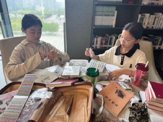 五六年级的同学们,满怀期待地走进了图书馆。图书馆宛如一座神秘的知识城堡,同学们就像勇敢无畏的小探险家,带着对知识的强烈渴望,兴高采烈地踏入其中,开启了一段奇妙的旅程。优秀的手账作品将在校园内展览。这些作品就像一张张热情的邀请函,吸引着其他同学加入阅读的行列。大家一起在知识的海洋里遨游,续写属于自己的精彩故事。