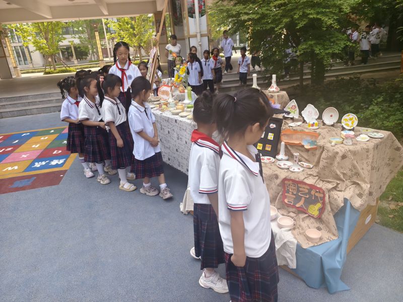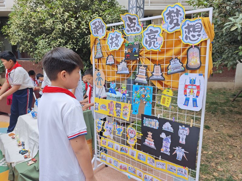 南阳市第八完全学校小学部举办“六一”社团艺术作品展,展现学生风采为庆祝第76个“六一”国际儿童节,南阳市第八完全学校小学部于5月29日在竞艳广场举办了一场别开生面的社团艺术作品展。本次活动以“缤纷社团展风采,欢乐六一筑童梦”为主题,旨在为学生搭建展示社团学习成果的平台,激发参与热情,展现学校素质教育的丰硕成果。 活动当天,竞艳广场被布置得绚丽多彩,各社团以独特的创意和精心的设计,将展区打造成了一个个充满童趣和艺术气息的展示空间。展区内不仅陈列了学生的优秀作品,还融入了富有个性的装饰元素,如利用桌子、凳子和纸箱搭造的创意场景,让整个活动充满了趣味性和互动性。