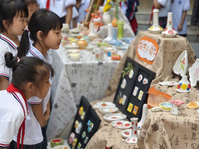 在陶艺展区,孩子们展示了自己的陶艺作品,形态各异的陶器让人眼前一亮;剪纸社团的作品则以精美的图案和细腻的刀工吸引了众多师生驻足欣赏;机器人社团的孩子们带来了自己设计和组装的机器人,现场演示了它们的运行与功能;书法和国画社团的作品更是彰显了传统文化的魅力,一幅幅书法作品与国画画卷充满了孩子们对艺术的热爱与追求。玖月绘画社团和清源读书社团也分别以独特的艺术形式和创意展示,赢得了大家的啧啧称赞。