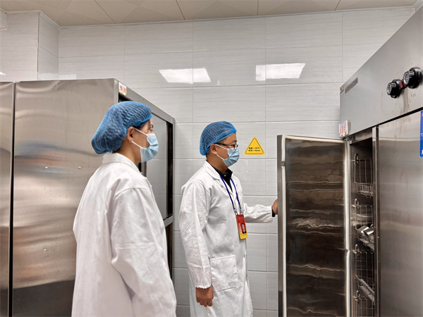 谢督学对照《庐阳区学校食品安全和膳食经费管理工作检查内容清单》, 对食堂的硬件设施与环境卫生进行了实地查看,仔细查阅进出库台账、食品留样及陪餐记录等。同时,重点检查餐饮具消毒设备运行与记录。谢督学强调,食品安全是幼儿园工作核心,务必保障幼儿 “舌尖上的安全”。