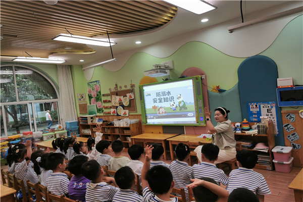 合肥市荣城幼儿园教育集团总园:珍爱生命,谨防溺水随着盛夏的脚步悄然临近,溺水事故的高发期也随之而来。为了扎实有效地保障幼儿的生命安全,全方位提升全体师生的防溺水安全意识,合肥市荣城幼儿园教育集团总园于2025 年 6 月 23 日开展 “珍爱生命,谨防溺水” 主题安全月活动,以多元化的教育形式为幼儿筑牢防溺水安全屏障。 小班幼儿在《防溺水小卫士》卡通动画的趣味情境中,认识到独自前往河边、池塘玩耍的危险。色彩鲜艳的画面与生动的情节,让孩子们直观理解“不能私自下水” 的安全规则,如动画中 “小鸭子乖乖跟着妈妈” 的情节,成为孩子们课后讨论的安全小案例。