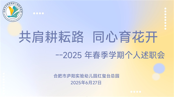 庐阳实验幼儿园教育集团红玺台总园:共肩耕耘路 同心育花开仲夏绘卷,万物并秀。为全面梳理春学期奋斗足迹,凝聚集体智慧,蓄力未来发展,2025年6月27日下午,合肥市庐阳实验幼儿园教育集团红玺台总园召开“共肩耕耘路 同心育花开”2025年春学期个人述职会。全体教职工齐聚一堂,以回望促前行,以反思启新程。