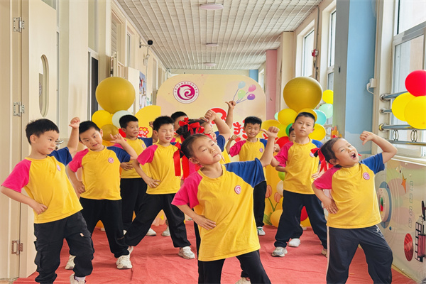 童艺绽放:才艺彰显成长 "童艺篇"环节将活动推向高潮。孩子们以活力四射的开场舞《哪吒》展现昂扬风采;朗诵《毕业诗》时,稚嫩却坚定的童声诉说着对幼儿园的不舍与感恩。舞蹈《俏执扇》灵动优雅,足球与篮球操表演彰显健康体魄,而《童心向党》《毕业歌》等节目更是将爱国情怀与离别情愫交织,赢得阵阵掌声。教师代表在发言中感慨:"孩子们用才艺为童年写下最美注脚,这是属于他们的闪耀时刻。"