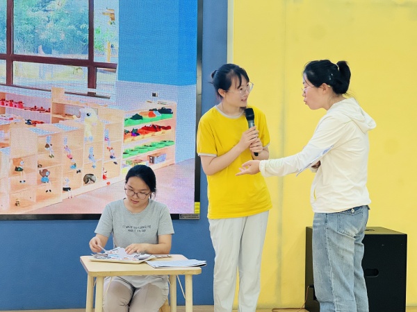 生活管理工作坊围绕“有序离园,自主温馨——离园环节细则与组织策略”展开教研。通过理论学习,明确离园环节的活动价值;观摩接孩子时小孩打架老师如何处理及与家长沟通的案例,现场研讨离园活动的细则和策略;分小班、中班、大班组进行分组研讨,梳理出适合各年龄段的支持策略。 此次教研帮助教师更好地反思、梳理离园环节的教育细则,为幼儿提供更温馨、有序的离园体验。 演练沟通技巧 提升家园互动