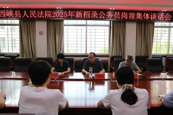 西峡法院开展2025年新招录公务员岗前培训7月7日至11日,西峡法院对2025年新招录的公务员开展了为期五天的系统岗前培训。本次培训以“政治铸魂、业务赋能、纪律护航”为主线,通过“理论+实践”“授课+观摩”的多元模式,助力新干警扣好职业生涯“第一粒扣子”。