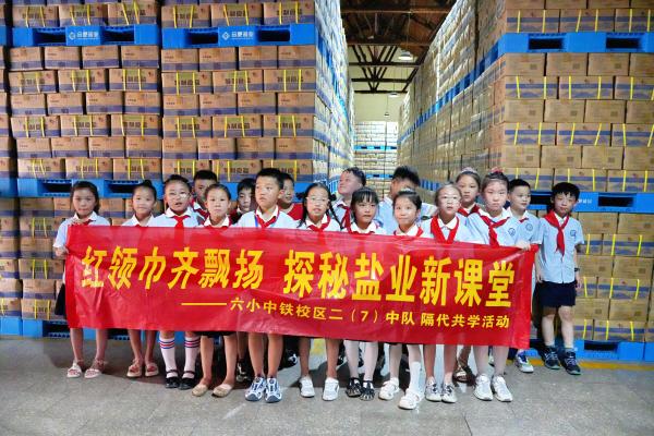 红领巾齐飘扬 探秘盐业新课堂 ——合肥市六安路小学中铁国际城校区二(7)中队盐学小队隔代共学活动盐是大地的结晶,是时光淬炼的馈赠,它以微末之躯,串联起人间烟火,它静默无言,却以独特的咸鲜,勾勒出世间滋味的轮廓,更在一粥一饭的寻常里,写满不可或缺的分量。 “盐”途有奥秘、祖孙共探知。2025年7月9日,合肥市六安路小学中铁国际城校区二(7)中队盐学小队的队员们跟随着祖辈们一起走进了安徽省合肥市盐业公司,开启了一场充满趣味与知识的盐业新课堂。