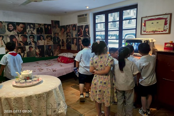 参加此次活动的队员有陈沐昕、薛亦辰、杨佳铄、李蔚霆、王天轶、詹景瑜、金诺。踏入记忆馆的瞬间,同学们仿佛穿越了时光隧道,一件件展品和图片深深吸引着他们的目光,心中满是兴奋与好奇。同行的爷爷结合一件件展品,给孩子们讲起老物件背后的故事,有趣的讲述让每个孩子都听得入了迷。他们像一群好奇的小探险家,仔细聆听每一段历史,深入了解家乡的变迁轨迹。先辈们的智慧与奋斗精神仿佛化作一股暖流,悄悄注入同学们的心田。记忆馆内十分热闹,民俗文化区洋溢着浓浓的生活气息,传统手工艺区里精美的手工艺品琳琅满目,让小朋友们看得应接不暇。
