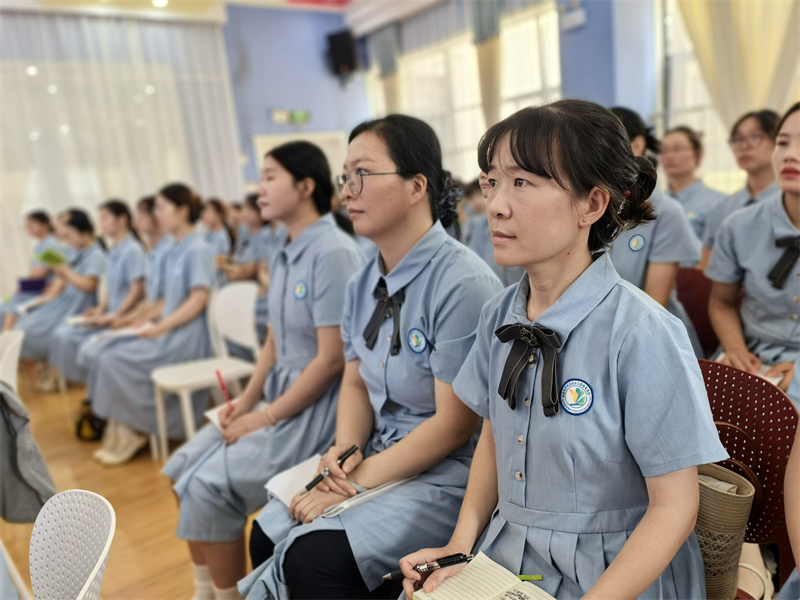 序启新章,同心赴新程 暑期工作已接近尾声,唐承露老师以“凝心聚力 奠基新程”为题,对2025年暑期重点工作进行全面总结。她从教师专业成长、园区环境优化、特色活动筹备等六大维度展开,详细回顾了教师暑期培训研修、园所设施升级改造、秋季开学活动策划、筹备各项先进申报工作、优化学校宣传阵地建设、落实安全教育及值班等工作。一系列扎实的暑期工作,为新学期教育教学有序开展筑牢了基础,也让全体教师更坚定了新学期奋进的信心。