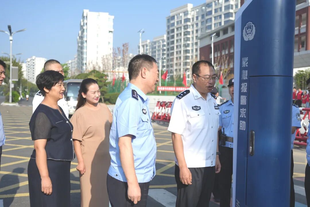 鲁市长走入校园,亲切地和孩子们打招呼,表示对新学期的祝福和期望。领导们来到保安室,查看防暴器材配备、使用情况,鲁市长在校门口当场按下一键报警器,与值班民警视频对话,确保一键报警,救援直达。领导们对学校有序的开学组织和扎实的安保工作给予肯定。