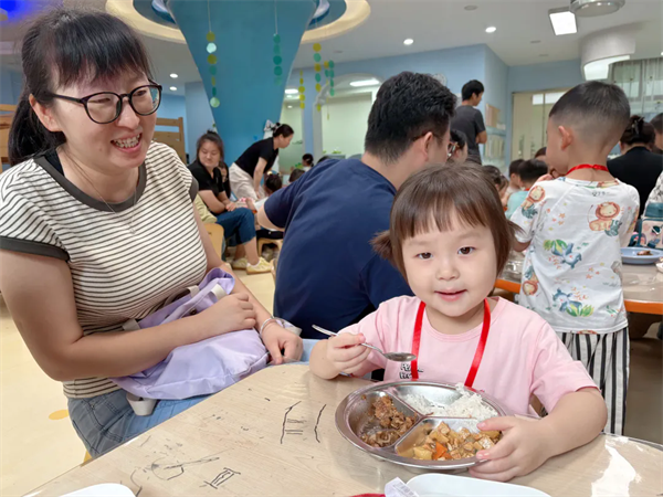 美味的午餐来啦!老师向家长和宝贝们介绍了菜品的名称及营养成分,孩子们品尝美味可口的饭菜,享受着美好“食”光。美好的幼儿园生活就此开启!
