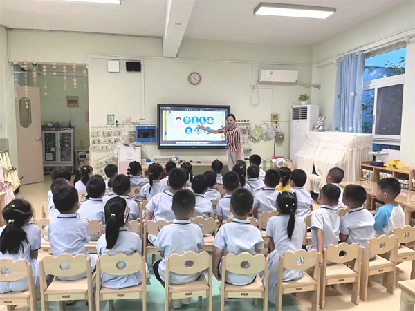 开学典礼仪式后,各班开展了形式多样、内容丰富的“开学第一课”安全主题教育活动。小班教师从心理适应方面出发,引导小班宝贝开心入园;中大班结合防踩踏、防溺水、传染病预防等方面,通过情景模拟、互动讨论等形式,引导幼儿树立安全防护意识。