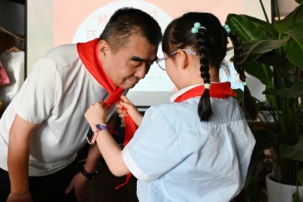 活动伊始,庄重而温情的“红色传承”环节拉开序幕。队员们为到场的姥爷们系上鲜艳的红领巾,在飘扬的红旗下,认真聆听姥爷讲述太爷爷作为红军战士的英勇事迹。那些关于信念坚守、无畏牺牲与坚韧抗争的往事,不再是课本中冰冷的文字,而是姥爷眼中闪烁的光芒、语气里的哽咽与动容。通过“倾听岁月红”,队员们真切触摸到家族血脉中的红色基因,深刻理解“红领巾爱家乡”背后沉甸甸的历史分量,对革命先辈的崇敬之情油然而生,爱国主义的种子在心中深深扎根。