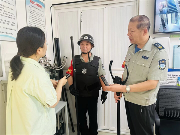 最后,各园保安对八大件和一键式报警器进行使用操作演示,并测试一键式报警器功能是否正常,确保新学期一键式报警器都能正常使用。