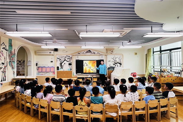 活动前,老师先带领孩子们走进古诗的世界,说着“小荷才露尖尖角,早有蜻蜓立上头”,又一起讨论夏天荷塘的热闹。念着“停车坐爱枫林晚,霜叶红于二月花”,大家仿佛看到满山火红的枫叶;生动的讲解、有趣的互动,让孩子们对古诗内容有了更深的理解。
