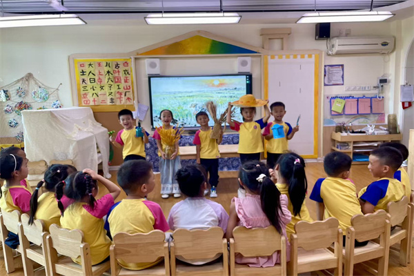 “我的麦穗是金黄金黄的!”“看,我点了一条好大的鱼!”孩子们兴奋地交流着,自豪地展示着共同完成的巨幅画作。教室里充满了欢声笑语,空气中弥漫着创作的热情与喜悦。