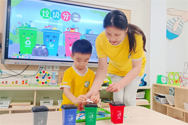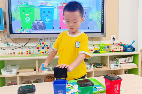 趣味分类 掌握环保技能 “香蕉皮是厨余垃圾!”“旧报纸要放进可回收!”在中班的教室里开展极具趣味的“垃圾分类小能手”游戏。老师们准备了四分类垃圾桶模型和各种垃圾图片。孩子们跃跃欲试,仔细辨认手中的垃圾图片,并小心翼翼地将其投放到正确的垃圾桶。孩子们在游戏中理解了“可回收”与“不可回收”的区别,环保意识从理念走向了实践。