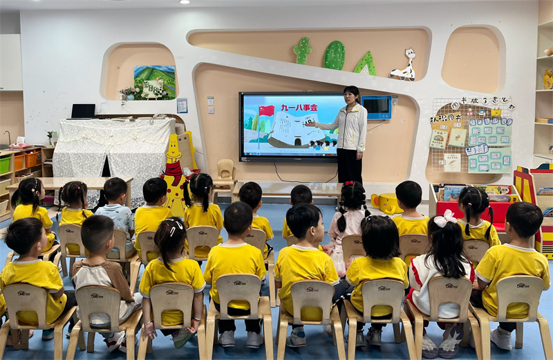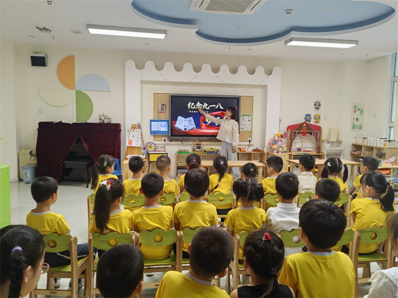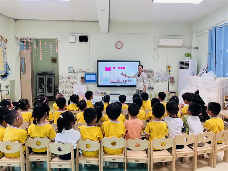 各班教师通过图片展示、视频讲解、故事分享等方式,科普“九一八”历史事件背景与防空安全知识,引导幼儿掌握正确疏散姿势,让安全常识入脑入心,为演练有序开展奠定基础。