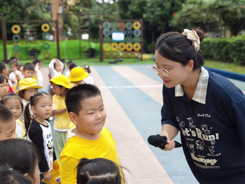 主持人陈宵慧子老师先用“分糖果”的比喻,把“昼夜平分”讲得通俗易懂,随后向孩子们介绍了一些秋分的知识与习俗,比如“吃秋菜”,采来新鲜的野苋菜与鱼片煮汤,寓意着阖家平安健康;“粘雀子嘴”,把汤圆放在田边,希望能让雀子不要破坏庄稼,充满了对自然的敬畏和对生活的美好期许,最后,通过问答的方式让小朋友们了解了身边的变化,感知秋分的来临。同时提醒小朋友们:“秋分就要到了,天气会越来越凉,我们要记得合理增添衣物、均衡饮食、保持锻炼,增强我们的体质”。