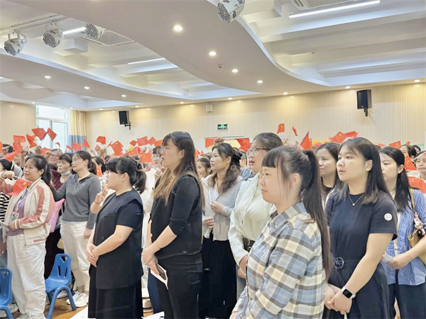 恰逢幼儿园迎国庆半日开放活动,跟岗园长们沉浸式参与其中,共同见证孩子们用稚嫩方式表达的爱国情怀。伴随着激昂的旋律,孩子们身着整齐服装,精神饱满地唱响《红红的太阳》《娃哈哈》等红色歌曲,奶声奶气的歌声里满是真诚与热爱;随后的早操环节,孩子们跟着节奏伸展、跳跃,透着满满的活力与朝气,一张张笑脸像阳光下绽放的花朵。园长们纷纷拿出手机记录这温馨瞬间,不时点头称赞。